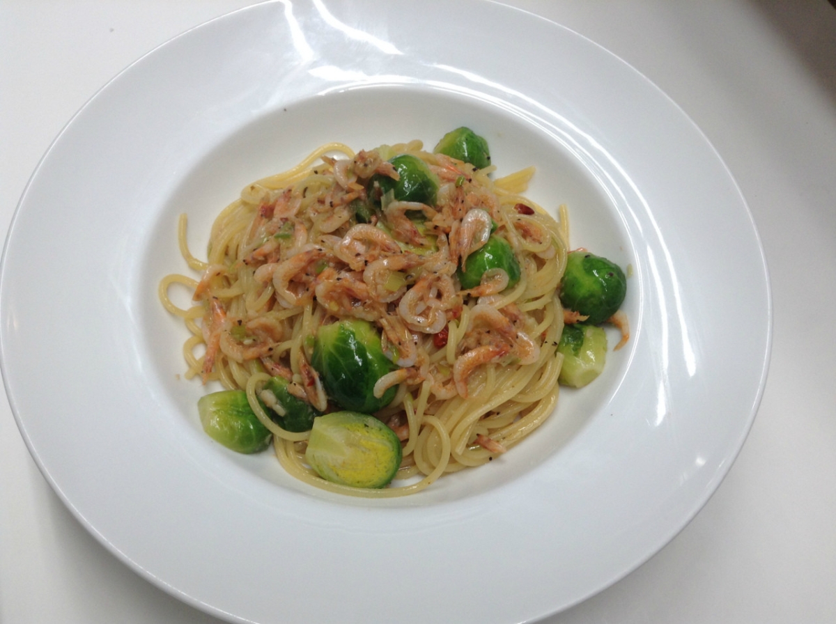 桜エビとしらすと芽キャベツと長ネギの塩味スパゲティ
