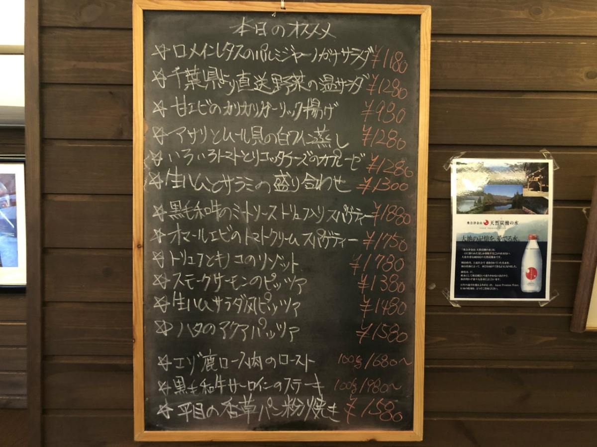 店内の黒板では本日のオススメや本日のランチについて掲示しています。