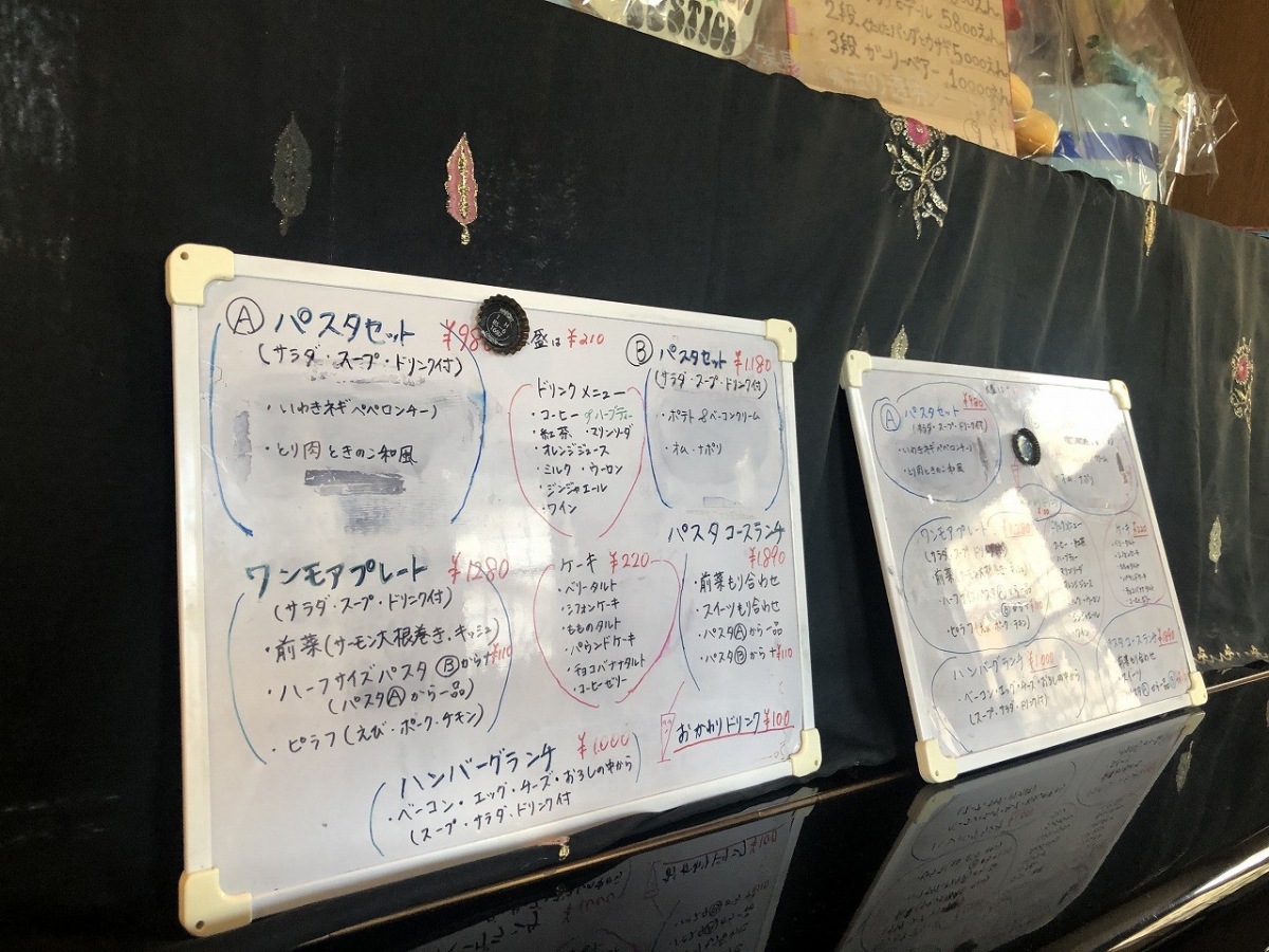 手書きのメニューボードで日替わりメニューの告知をしています。