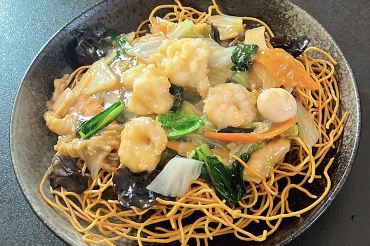 たっぷりと蓄えた白菜の甘みが溶け込んだ、野菜が満載のあんかけが絶品。香ばしい麺としっかり絡めてどうぞ。