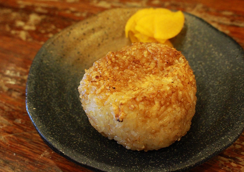 小腹が空いた時にぴったり焼きおにぎりは、いわき産のお米を使用している人気メニューです。