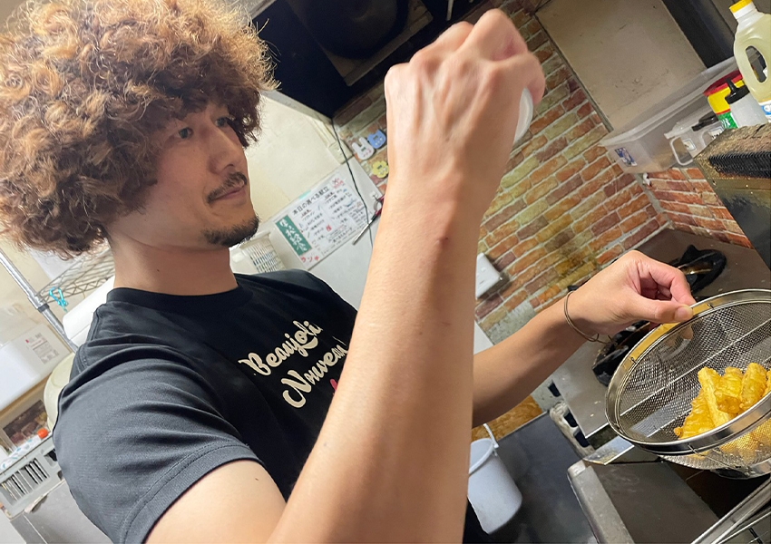 アフロヘアーがトレードマークの店主・若松さんは、地元の美味しい食材を使ったメニューで多くの人を喜ばせたいという想いから、2013年に“食をエンターテイメントとして楽しんでもらう”をコンセプトに「和食酒場AFRO(アフロ)」をオープンしました。