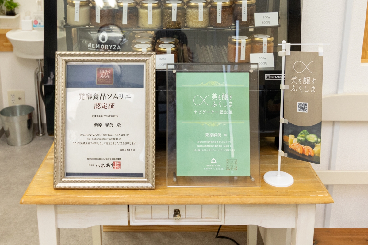 「発酵食品ソムリエ」「スポーツ栄養プランナー」「美を醸すふくしまナビゲーター」などの肩書を持つ、スタッフの栗原麻美さん。ふくしまの発酵食文化を未来へつなぐため、発酵調味料のワークショップなども開催しています。「発酵食を食べて、皆さんに美しく健康になってほしいです」と語ります。