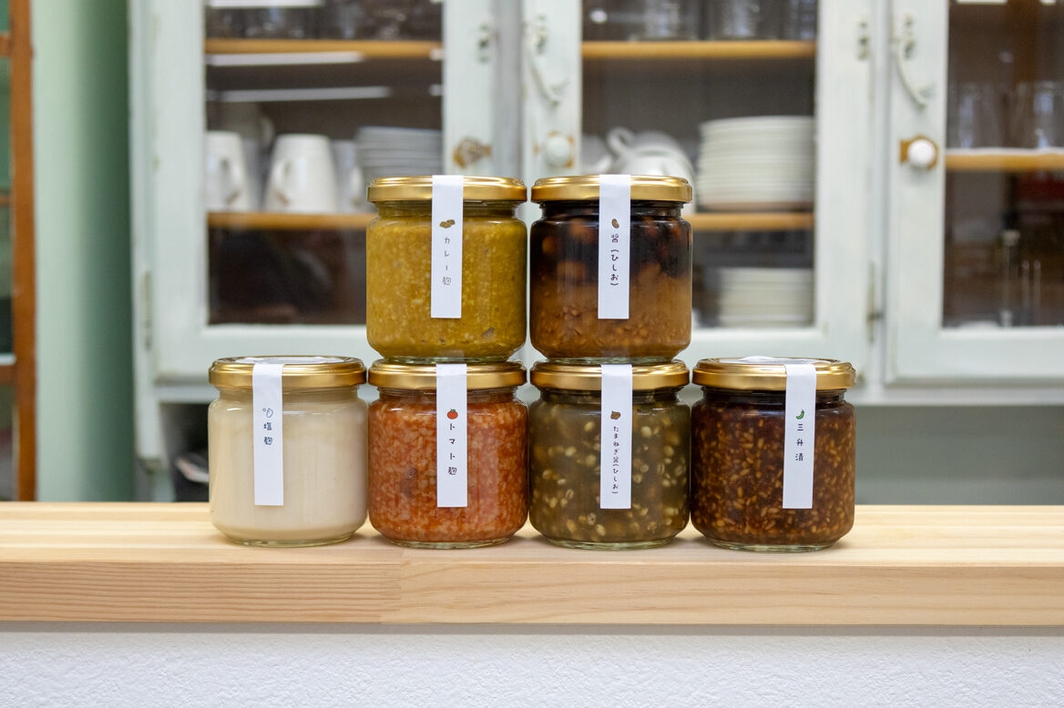 今回の移転に伴い、「醤(ひしお)」「玉ネギ醤」「塩麹」「トマト麹」「カレー麹」「三升漬」など、オリジナル発酵調味料を商品化。店内やECサイトで購入することができます。