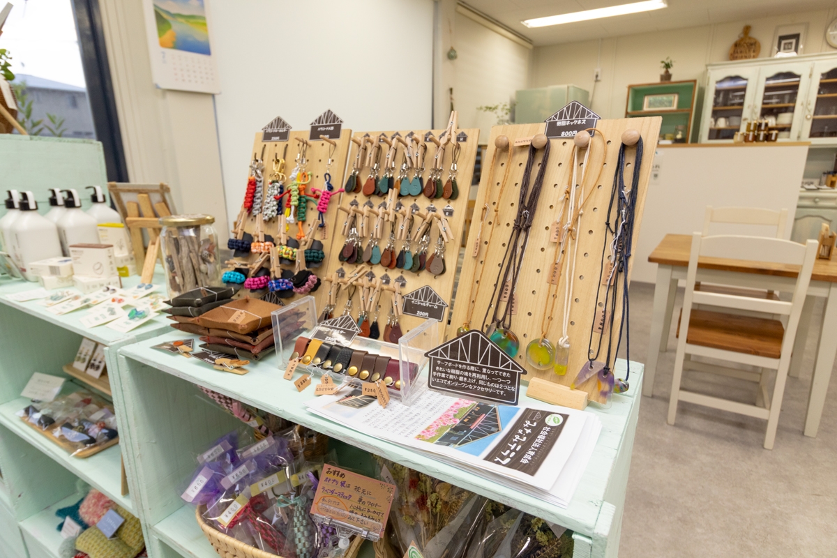 オーナーのボランティア活動の中で交流が生まれたという、就労移行支援事業所「みなみテラス」利用者の方による雑貨も販売。また、こちらの事業所で栽培した、トウガラシを始めとした野菜も使用しています。