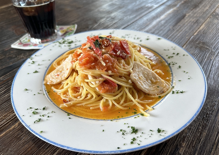 また、ニンニクと鷹の爪がカジキマグロとトマトの旨味を引き出すと共にコクと辛味もプラスし、オリーブオイルが全体をバランスよくまとめています。