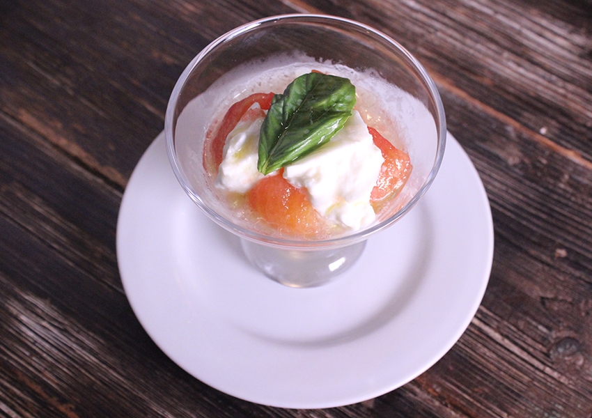 トマトをはちみつでマリネし、ほんのりニンニクの風味を効かせることで、生クリーム入りのモッツァレラチーズと絶妙にマッチした一皿です。