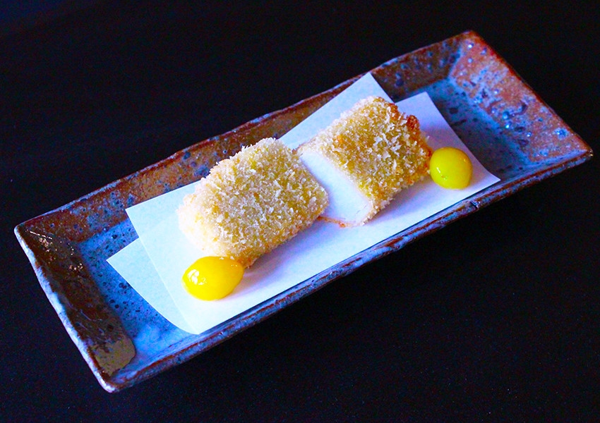 こちらは、出汁で炊いて素材の味を引き出した「京芋のフライ」です。