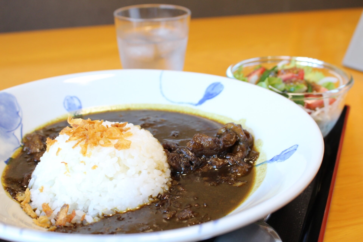梨のピューレを入れた「牛すじカレー」や季節の野菜を使った「野菜天丼」などいわきに縁のある生産物を使ったメニューを提供しています。
