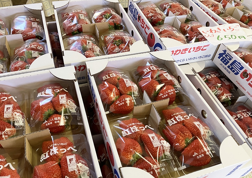 販売している農産物は、地域周辺の農家さんが毎日収穫した新鮮な野菜や、藤間・夏井地区で栽培が盛んなイチゴが中心。