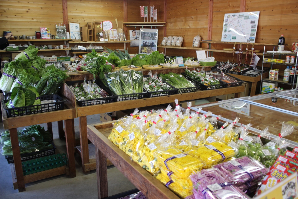 地元生産者が協力して三和町の国道49号線沿いで営まれている「三和町ふれあい市場」。
