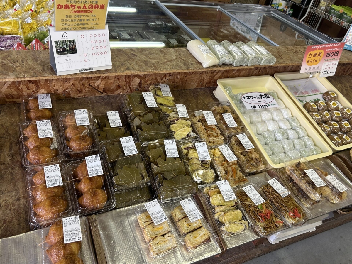 三和町産の野菜を使った三和のかあちゃん自慢のお惣菜も大人気!