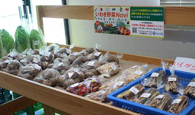 市内南部を中心に、西は田人や遠野から、南は北茨城の生産者が持ち寄り、四季折々の野菜を取り扱っています。