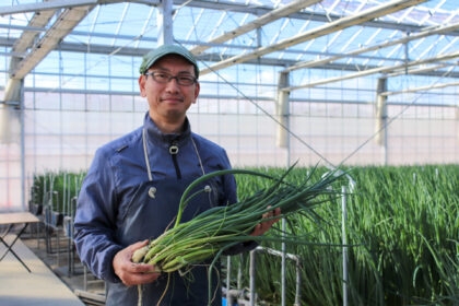 本市では、長ネギの栽培は100年以上前の明治初めから始まり、ほぼ一年中栽培され、県内でも有数の長ネギの産地。いわきねぎは、白根がまっすぐでほんのり甘いのが特長です。